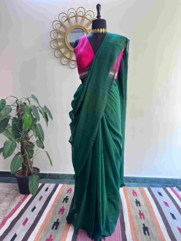 Mehindi Green and Royal Blue ( Cotton Acrylic Saree )